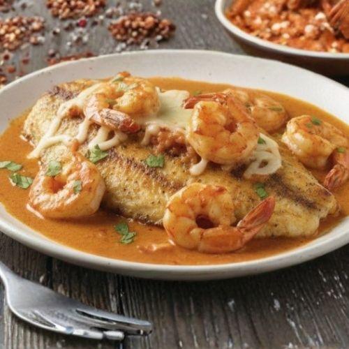 Pescado al romero en cremosa salsa de camarón, aromático y lleno de sabor.